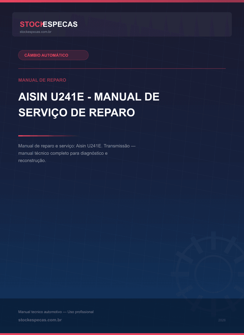 Manual técnico de reparo e manutenção de câmbio automático. Aisin U241E – Manual de serviço de reparo. Este guia abrange procedimentos de diagnóstico, desmontagem, inspeção de componentes e remontagem, incluindo especificações de torque e volumes de fluido ATF.