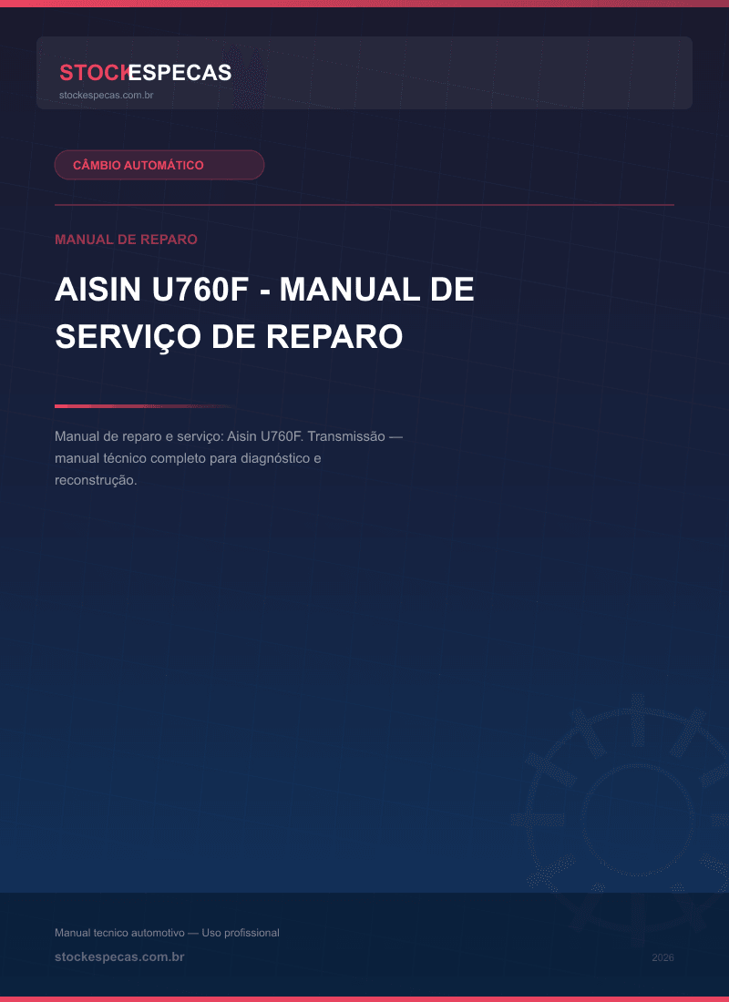 Manual técnico de reparo e manutenção de câmbio automático. Aisin U760F – Manual de serviço de reparo. Este guia abrange procedimentos de diagnóstico, desmontagem, inspeção de componentes e remontagem, incluindo especificações de torque e volumes de fluido ATF.